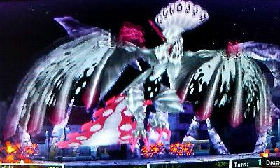 デストロイドラグは単純にLIFEと攻撃力が高いパワータイプですが、「マッスルアイ」という行動を一回休みにする技も使ってきます。防御力を高めて、回復は早めに。能力低下系のスキルが決まれば幾分楽なんですが。