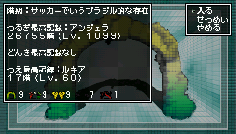 記録を効率的に伸ばすためには、階層ジャンプを早めに999まで持っていくのが早道です。てんしのゲートやふつうのゲートでこつこつと階層ジャンプをため、ある程度たまったらばくちのゲートで×3とかを狙います。まあそういうときに限って-99とか出るんですが。