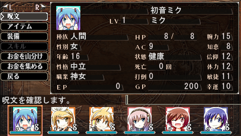 以前、うちのブログではウィザードリィ外伝シリーズのプレイ日記で、キャラにVOCALOIDの名前を入力してプレイしていましたね。