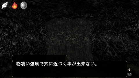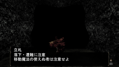 覚悟を決めてさっきの立て札があった断崖絶壁から飛び降り、地下2階へ。しばらく進むと、強風が上に向かって吹いている場所があるので入ってみると巻き上げられ、地下1階の強風が吹き出している穴のある場所へと移動しました。なるほど、こうやって移動するわけか。