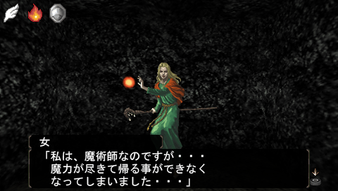 どうやらMPが尽きて帰れなくなって困っている様子。ティオメンテで送り返すことにすると、お礼としてコウモリのベルトをくれました。(魔術師レベル7のMPが1減るので注意!)