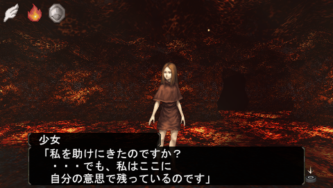 マップ中心へ歩を進め、溶岩の海をソーサレオで超え、中心部の小部屋へ。そこには一人の少女がいました。