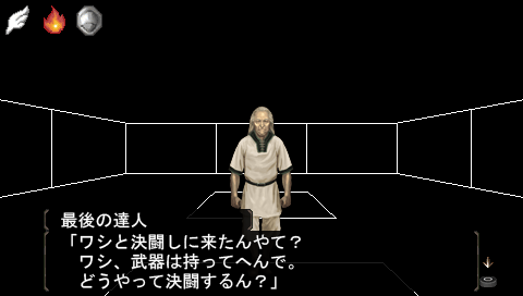 彼とも戦わないといけないんですが、最後の達人は武器を持っていないので戦えない、渡すものも何もないので戦わないと言います。でも結局戦闘になるんですが、最後の達人は言葉通り全く攻撃を仕掛けてきません。ACが-42とものすごい事になってるんですが、ロブティを重ねがけすれば問題はありません。