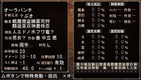 誰でも装備できて命中精度20とか見るべきものはあるんですが、右下の相性欄を見ると全種族に対して×となっています。つまり