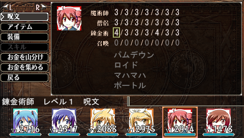 しかしそれならば最大MPは全レベルで3になるはずなんですが、何故かレベル1と5だけ4。錬金術呪文はレベル1と5だけ呪文が4つ(他は3つ)あるので、本家たるWizardryであれば正しい挙動なんですが…