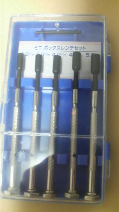 ダイソーで買える「ミニボックスレンチセット」の3.0m/m(一番左)を使います。