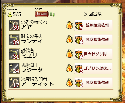 というわけでなんとか5人目の犠牲者が出ることを回避した我がギルド、現在のメンバーの状態です。