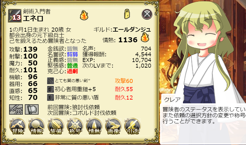 依頼希望の見直しを行った結果、(前回の記事参照)、アヤの情熱が500前後をキープできるようになりました。