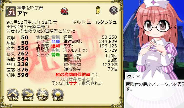 力のある冒険者が引退すると師範になって他の冒険者のステータスにボーナスを与えることが出来るんですが…強制引退もできますがそれはちょっと違う気もするんだよなあ…