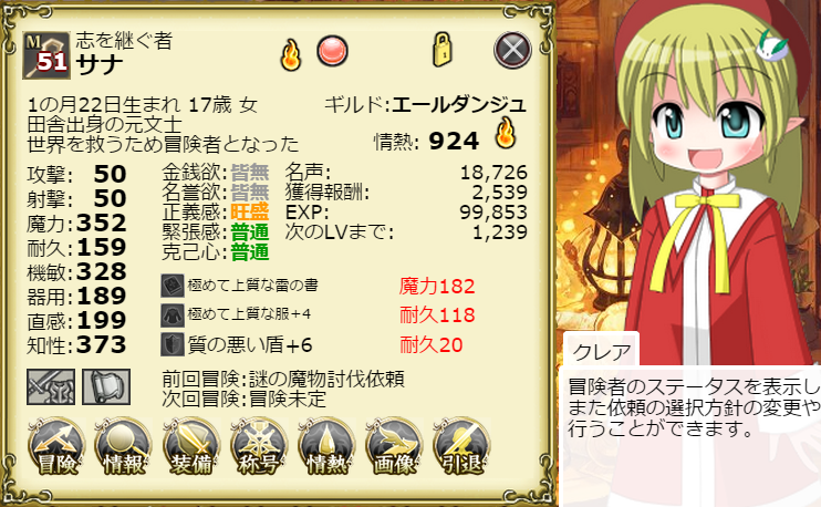 魂の宝珠で継承キャラを作ろうか悩んで中1日、上手い具合にレベル51の雷魔道書を回収できたので早速アヤの魂を継承。