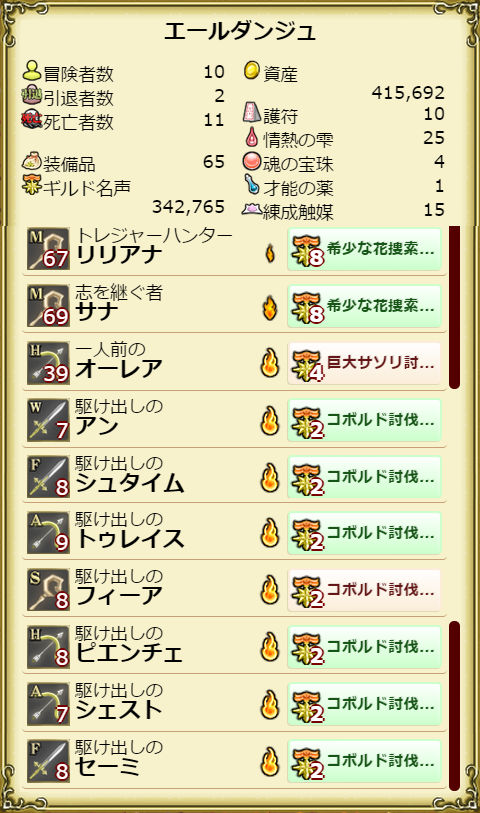 これによって、酒場でパーティーを編成して、ある程度自分の好きな冒険を選んで送り出す事が出来るようになる(パーティーは6人でならないといけないため無課金では無理)ので、情熱の維持がやりやすくなるでしょう。