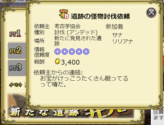 そのため、よほど大きな遺跡でない限りは短期間で依頼が締め切られてしまうようです。