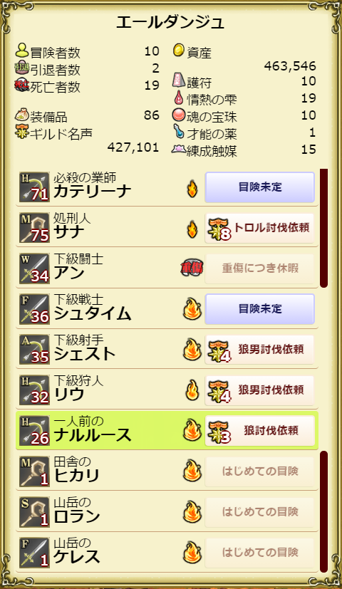 現在のギルド状況。