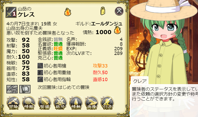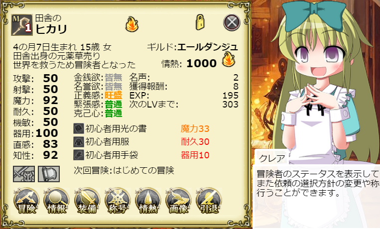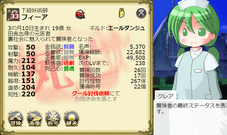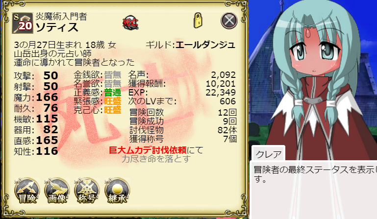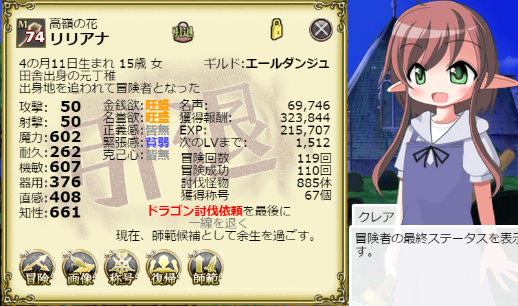 やはりLv60~70台以上は情熱の雫がないと情熱の維持が難しいですね。希望の依頼が見つからずに「冒険未定」になっちゃうことが多いですし。