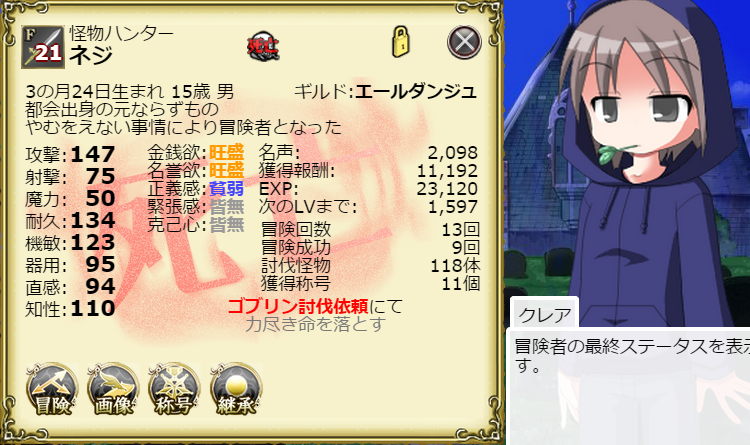 あれこれ考えて作ったキャラがあっさり倒れるとさすがに凹む。