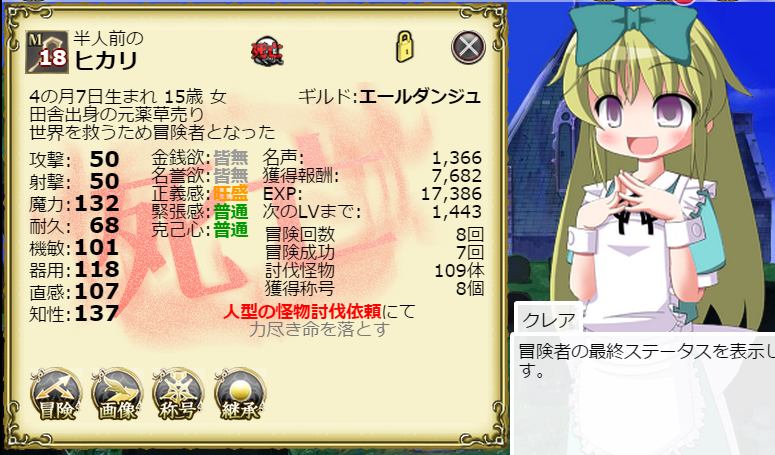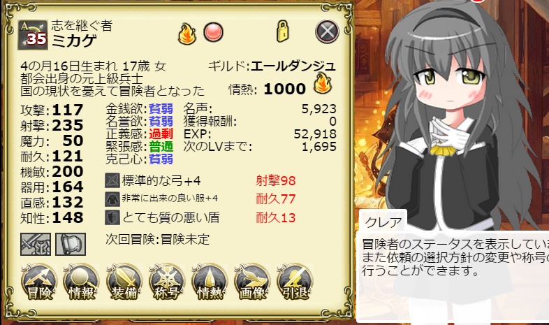 個人的にお気に入りのミカゲ(アーチャーLv35)はミユリからの継承。