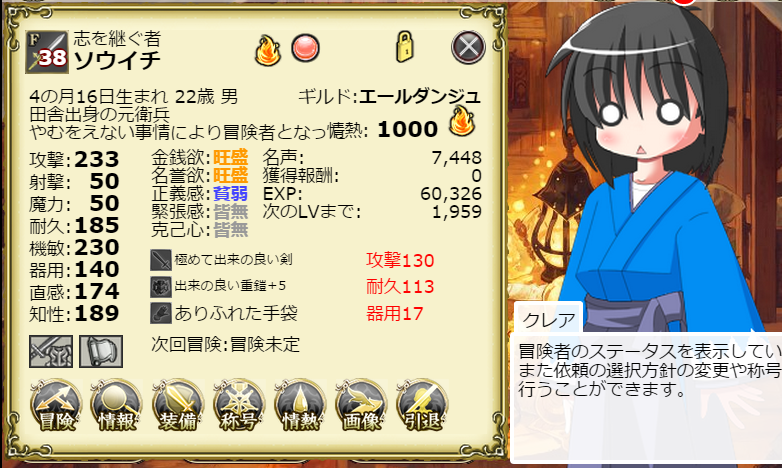 ソウイチ(ファイターLv38)はエネロからの継承。