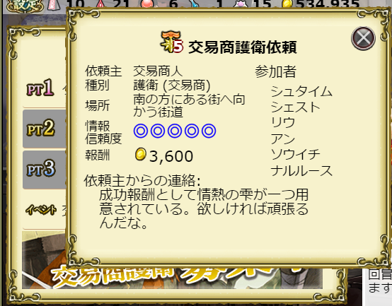 普段の依頼より報酬が高い上に1回成功する毎に情熱の雫が1個もらえるとあれば、参加しない理由はありません。さっそくパーティーを組んで参加してみましたが、
