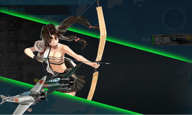 上にも書きましたが、艦載機が攻撃するタイミングはまず戦闘開始前。先制爆撃で敵の戦力を削り、戦闘を有利に進めるのが主な役割。