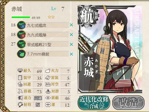 なお、近代化改修で上がったステータスは初期化されるので、本格的な近代化改修は改造後に行う方が効率が良いようですね。