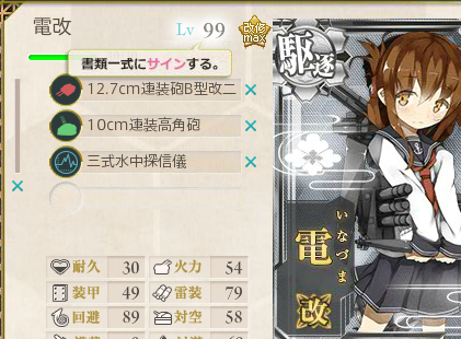 レベル77まで上げたから大丈夫だろ…と思ってたら改造レベルが78だったという罠。まあ演習ですぐレベル上がりましたが…
