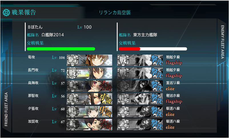 このまま、新たに発生した任務「二人でする初めての任務!」に挑戦。電ちゃん旗艦でリランカ島(4-3)のSランククリアを目指します。