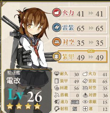すでに装甲は49でMAXを迎えました。もう重巡洋艦並みの性能になってます。