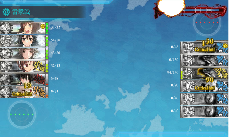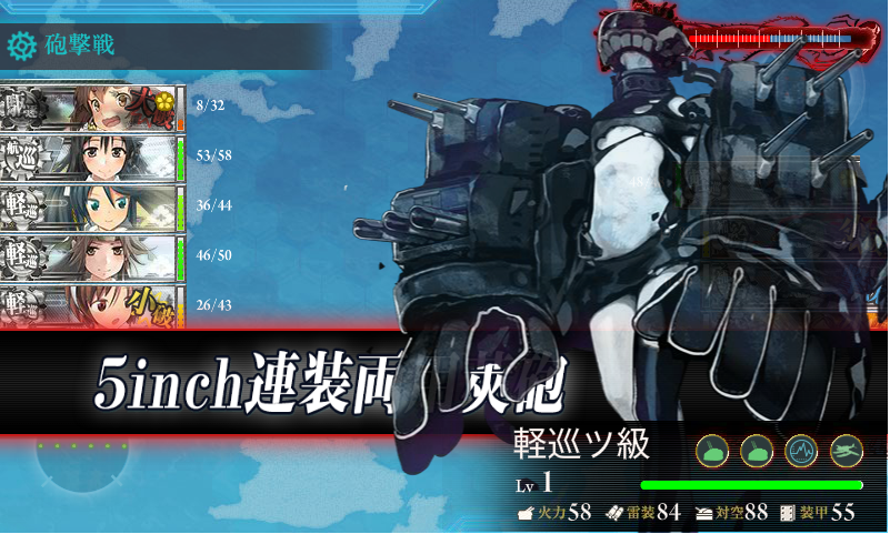 ここのボスは新登場の軽巡ツ級。まあ所詮は軽巡なのでそこまで苦戦はしません。むしろ一緒にいる戦艦や補給艦が邪魔だったりします。