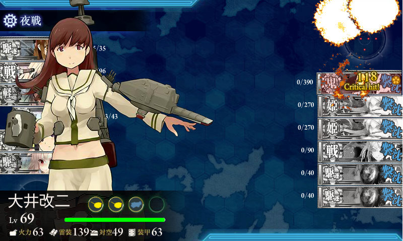 ボスまではたどり着けるんですが空母水鬼になかなかダメージが与えられず、結局20回程度のトライでゲージ破壊成功。ちなみに最短では6~7回だそうです。