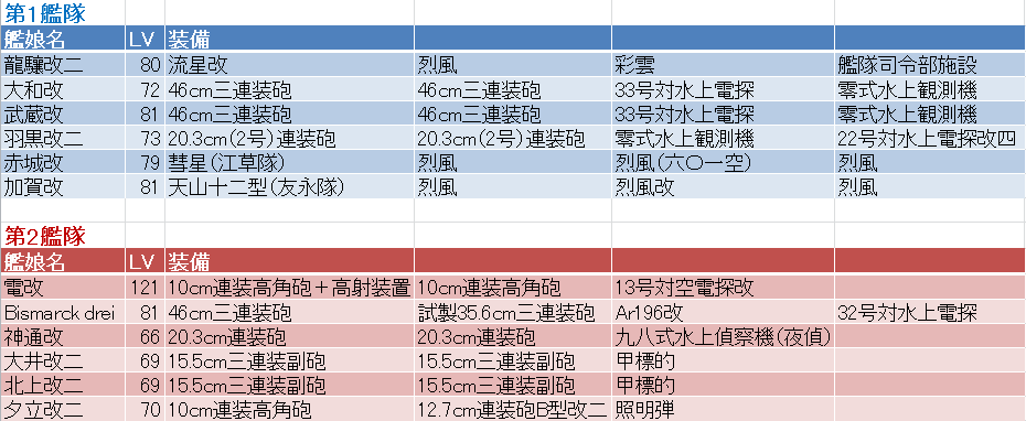 水上打撃艦隊の場合は今まで通り第1艦隊から先に戦うので、それが嫌な場合は水上打撃艦隊で行った方が良いでしょう。
