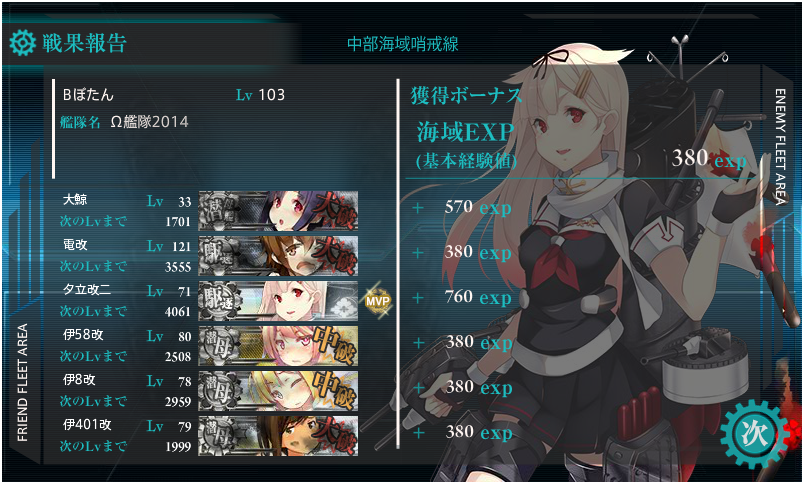 艦これですが、今回は最近実装された中部海域の第1ステージ、中部海域哨戒線(6-1)について。