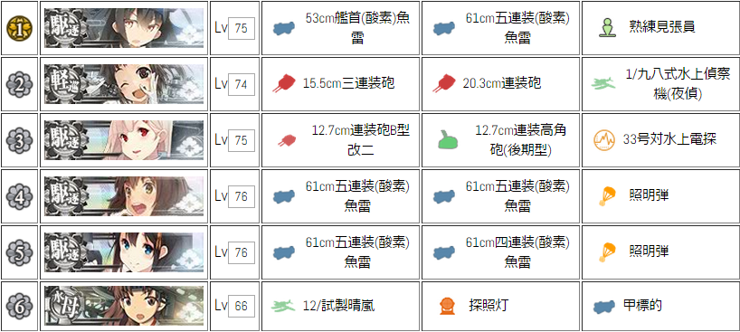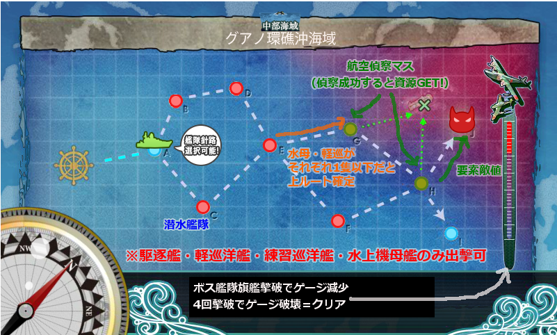 駆逐艦や軽巡洋艦、水上機母艦の錬度が問われる海域ですね。