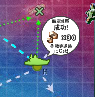 G・Hマスは特殊なマスで、ここにさしかかると、水上機母艦が×印の地点に向かって艦載機を飛ばして偵察を行います。