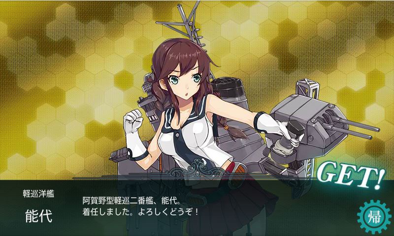E-2のクリア報酬は軽巡洋艦「能代」(のしろ)。軽巡洋艦としては強いようですがどうしましょうか。