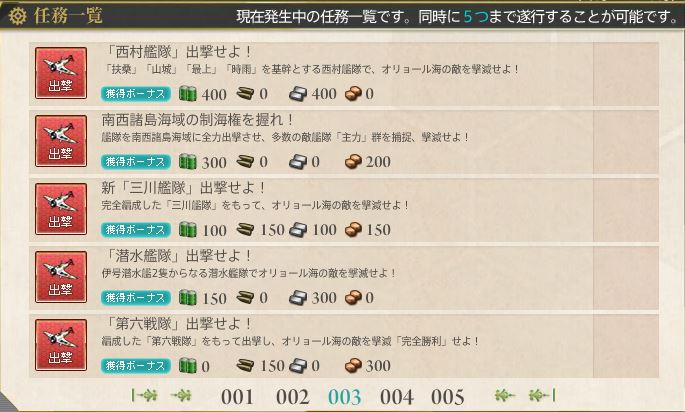オリョール海(2-3)ならすでにクリアしていますが、任務が溜まっていくだけなのもなんか気分が悪いので、ここらで一気に消化してしまおうかと思います。