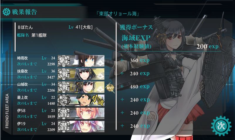 ちなみに『「西村艦隊」出撃せよ!』のほうは、該当艦娘が結構育っていたこともあり『「潜水艦隊」出撃せよ!』と一緒にクリア。