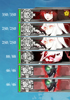 道中はそんなにつらくないです。空母はたくさんいますが戦艦は1隻しかいませんし。航空戦マスも艦戦や対空カットイン要員を準備しておけば大丈夫でしょう。