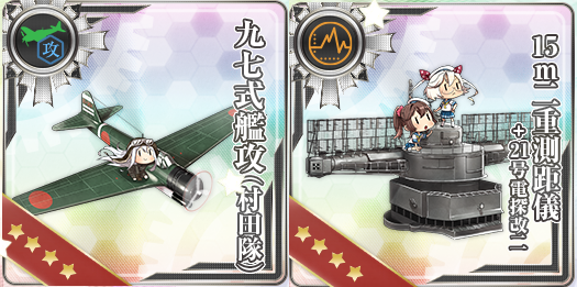 まず新装備の「九七式艦攻(村田隊)」と「15m二重測距儀+21号電探改二」。電探の方は乙作戦以上限定なので注意。