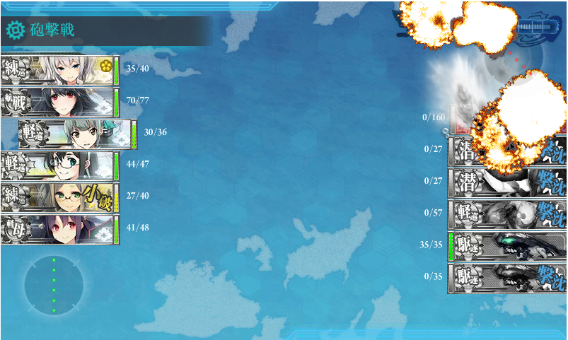 甲作戦の場合、HPが130~160あり、夜戦ではダメージは通らないので昼間の間に倒さないといけません。