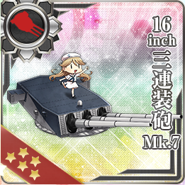 ランカー報酬として先行配布された時にちょっと話題になった装備です。なにせアメリ艦に積まれていた主砲ですから…ついに連合国出身の艦娘の登場となるか!?
