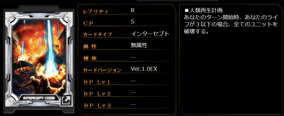 Ver.1.0EXのインターセプトカード「人類再生計画」。