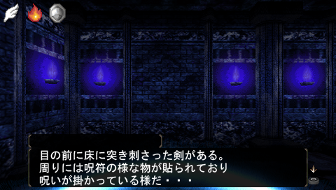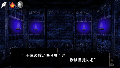 地下2階からは神殿になっているようです。壁に掛けられたろうそくが怪しい雰囲気を醸しています。