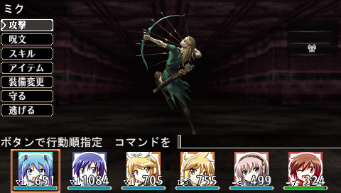 ナゴは非常に防御力が高く、普通に戦っていると攻撃がほとんど通らないので眠らせないといけないんですが、状態回復率が80%もあるので、眠らせてもすぐに起きてしまいます。こういう時は、コマンド入力時におもむろにLボタン。メンバーの行動する順番を指定することが出来るので、最初にミサーマを使うキャラに行動させ、続けて集中攻撃で1ターンで倒してしまえばOKです。