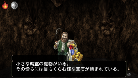 すると、ちょうどその穴の前に、精霊の魔物がお宝を持ってたたずんでいました。