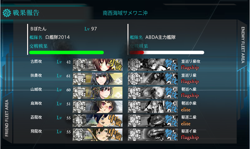 わたくしの場合、戦艦2重巡2空母2のスタンダード重火力艦隊でクリア。重巡には偵察機を乗せ、弾着修正射撃ができるようにしています。