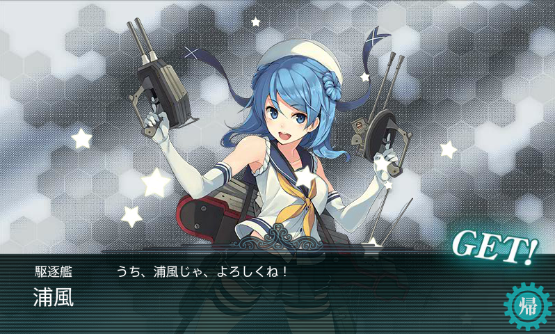 新艦娘の浦風キター!!!!青髪の駆逐艦娘で、広島弁しゃべります(呉にいたかららしい)。