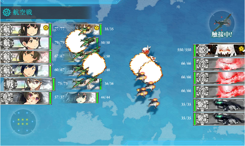 砲撃戦は行わず、開幕航空戦を2回やって終わりです。(その後夜戦に入ることも可能)