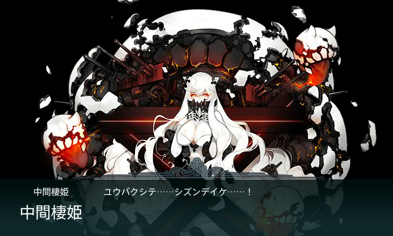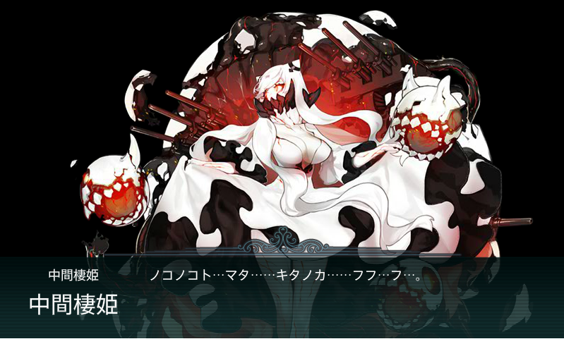 ここのボスは、E-3で中ボスとして対峙した中間棲姫。後1回倒すとクリアする状態になると本気モードになります。
