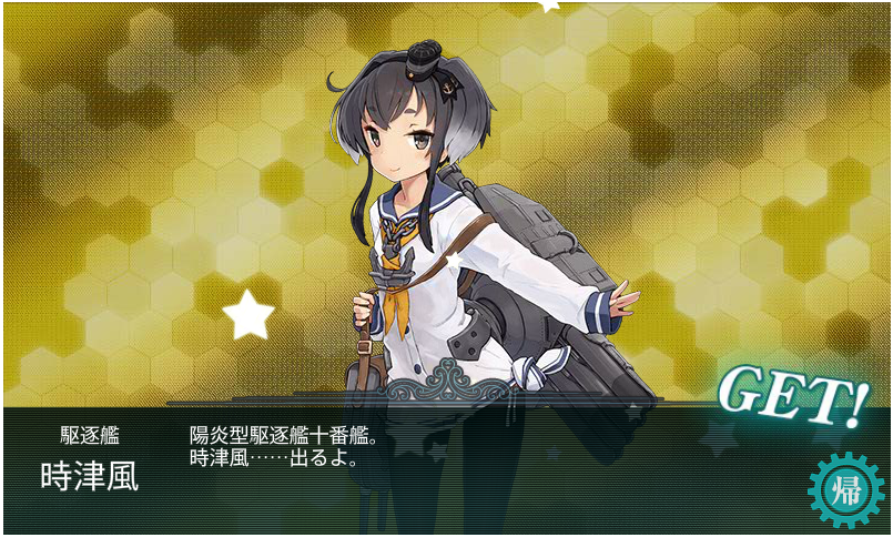 E-4の報酬は、応急修理女神と駆逐艦「時津風」。