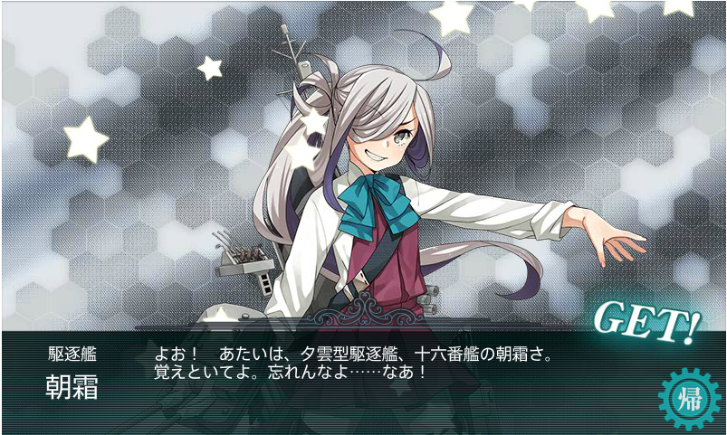 あとはイベント終了当日に滑り込みで入手した朝霜だけですね。